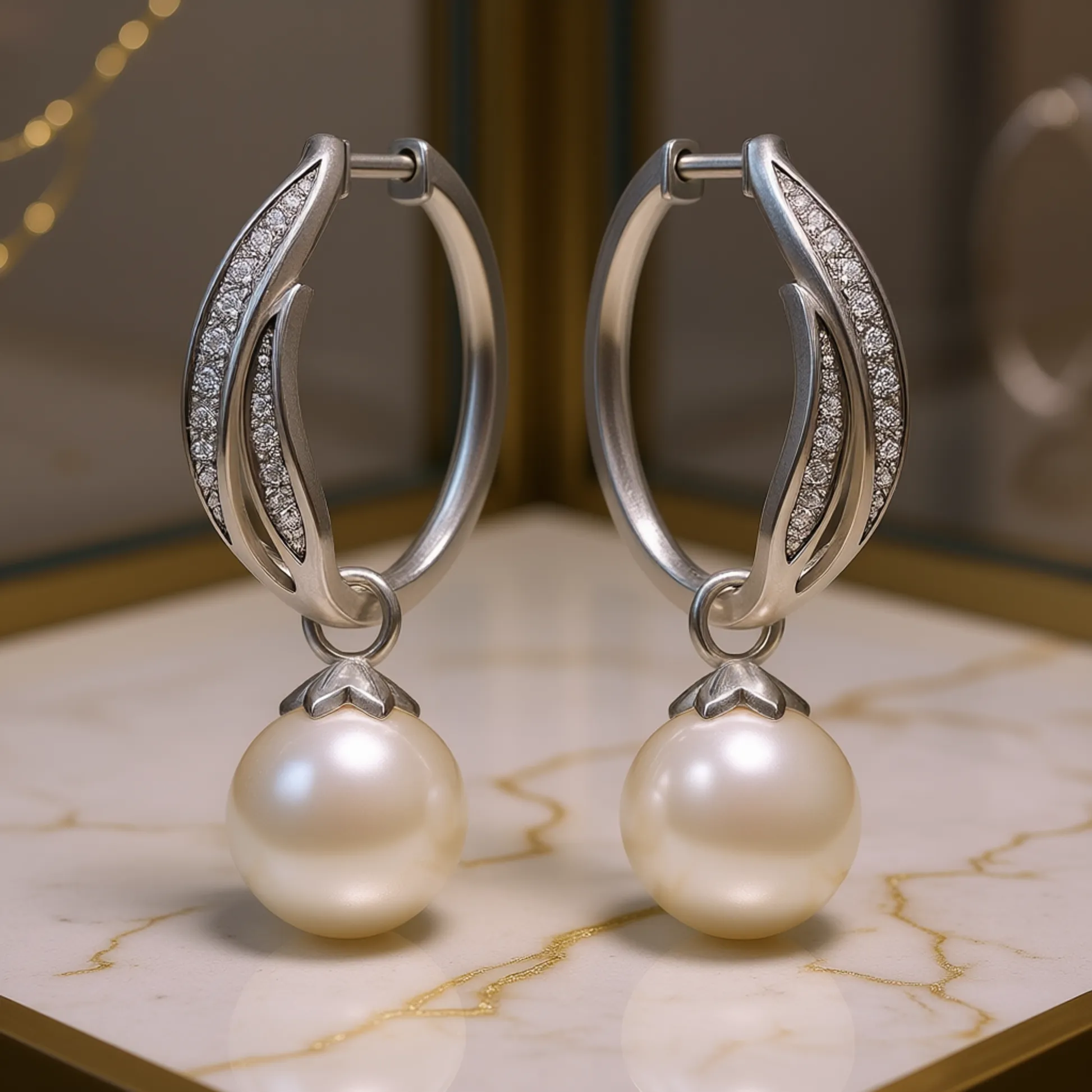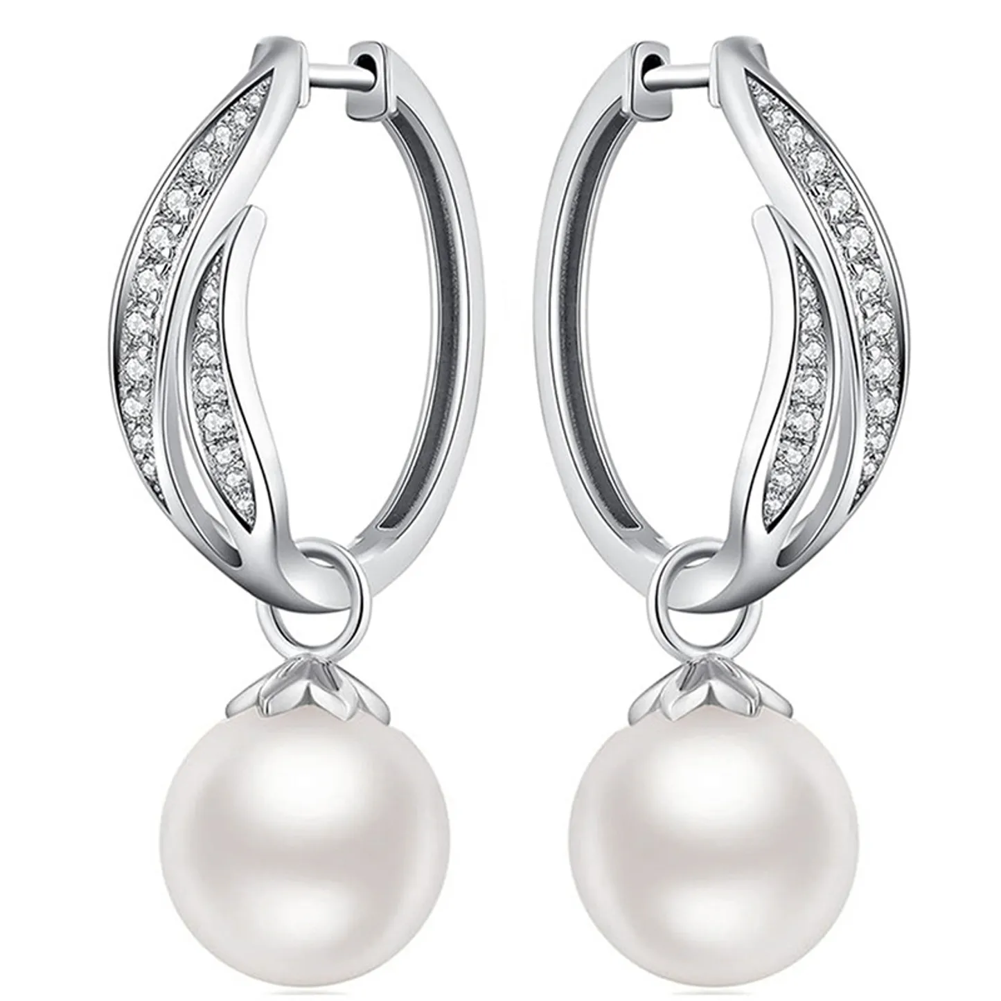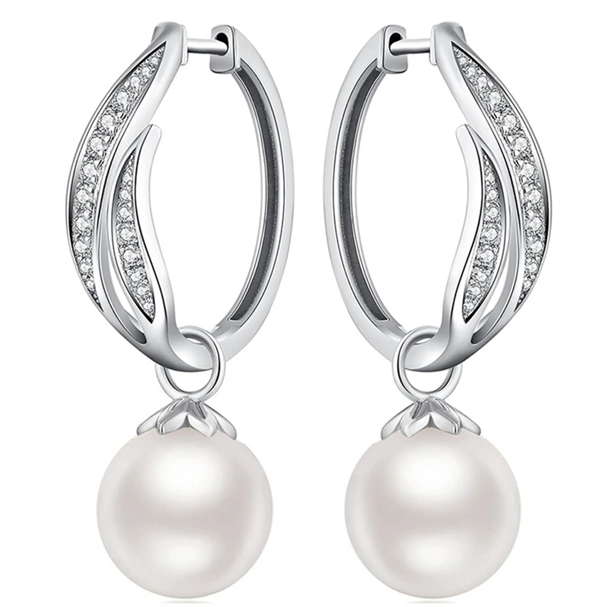 Color White Gold shape\pattern round pearlshape round earringstype hoop pearlcolor white pearlmaterial pearl pearlgrade AAA occasion Wedding inlaytechnology Channel setting gender Women's metalstype 925 SILVER pearltype Cultured Pearl plating Rhodium Plated style Classic