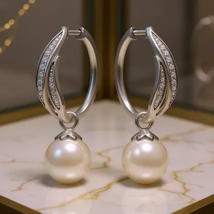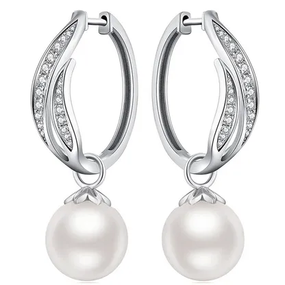 Product Introduction: These elegant White Gold Pearl Hoop Earrings feature a timeless design, combining the classic beauty of round AAA cultured pearls with sleek925 sterling silver hoops. Rhodium-plated for enhanced shine and durability, these earrings are perfect for women seeking refined jewelry for special occasions such as weddings or formal events. Core Features: Why Choose These Earrings: