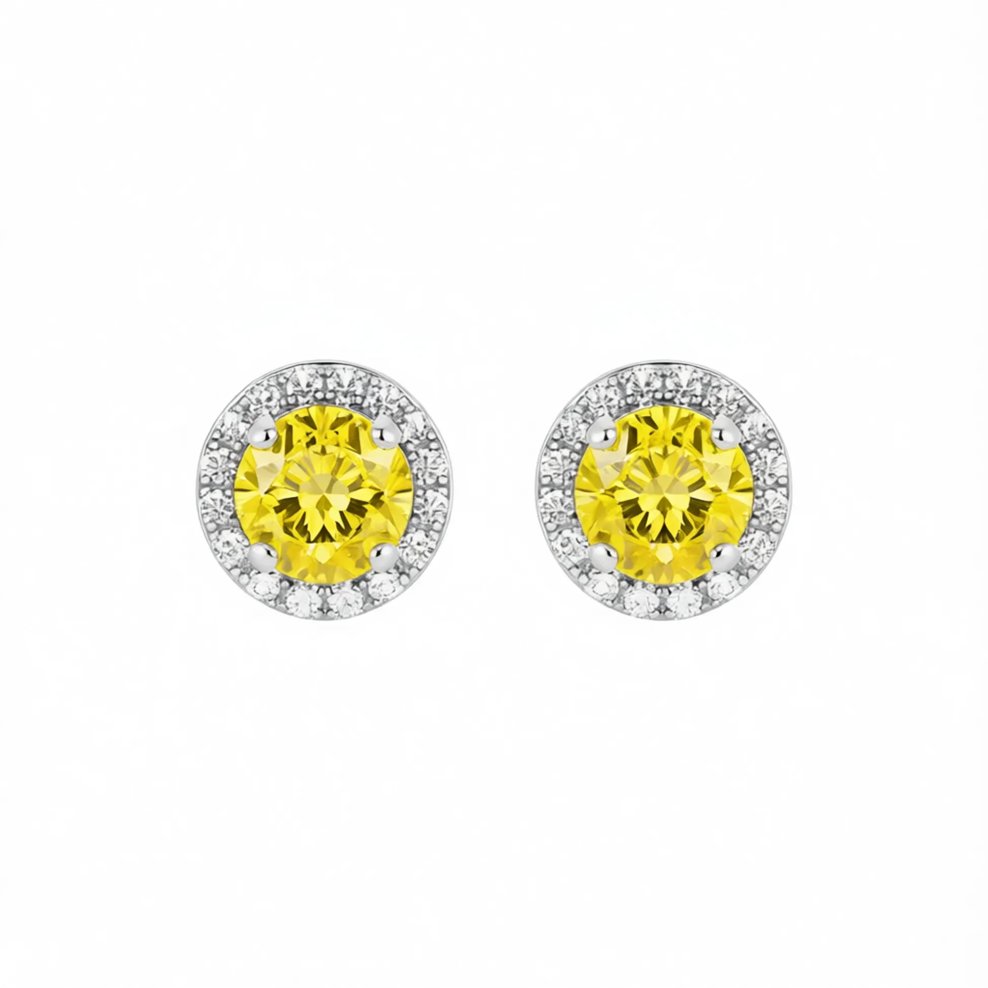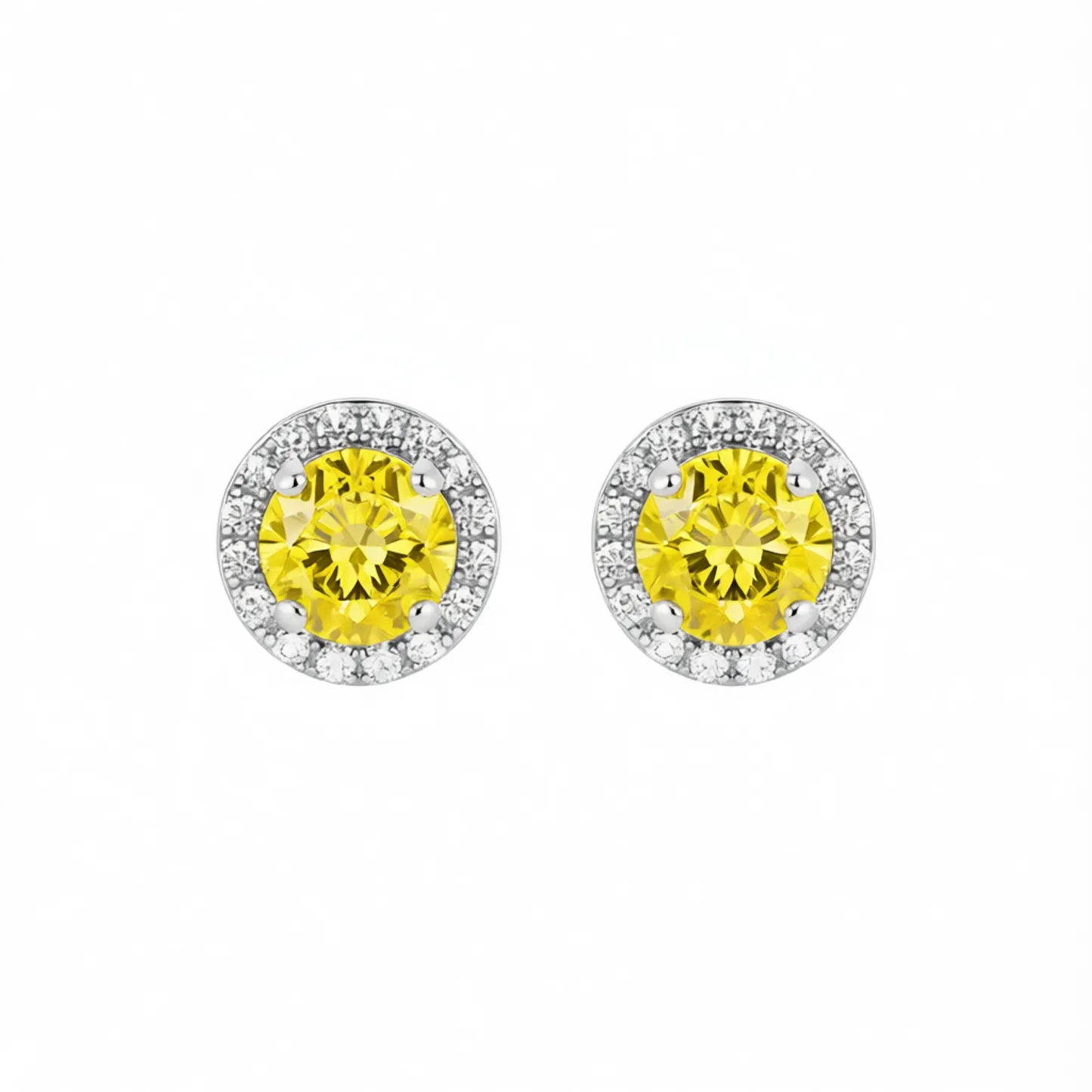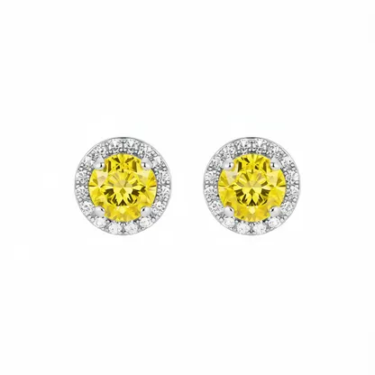 Product Introduction: Elevate your everyday elegance with these exquisite white gold yellow diamond stud earrings. Crafted with precision and designed for timeless appeal, these earrings feature a stunning round brilliant-cut yellow diamond at the center, encircled by a halo of sparkling clear stones. The claw setting securely holds each gemstone, maximizing light reflection and brilliance. Perfect for women who appreciate classic fashion with a touch of vibrant color, these earrings are ideal for both daily wear and special occasions. Core Features: Why Choose These Earrings: