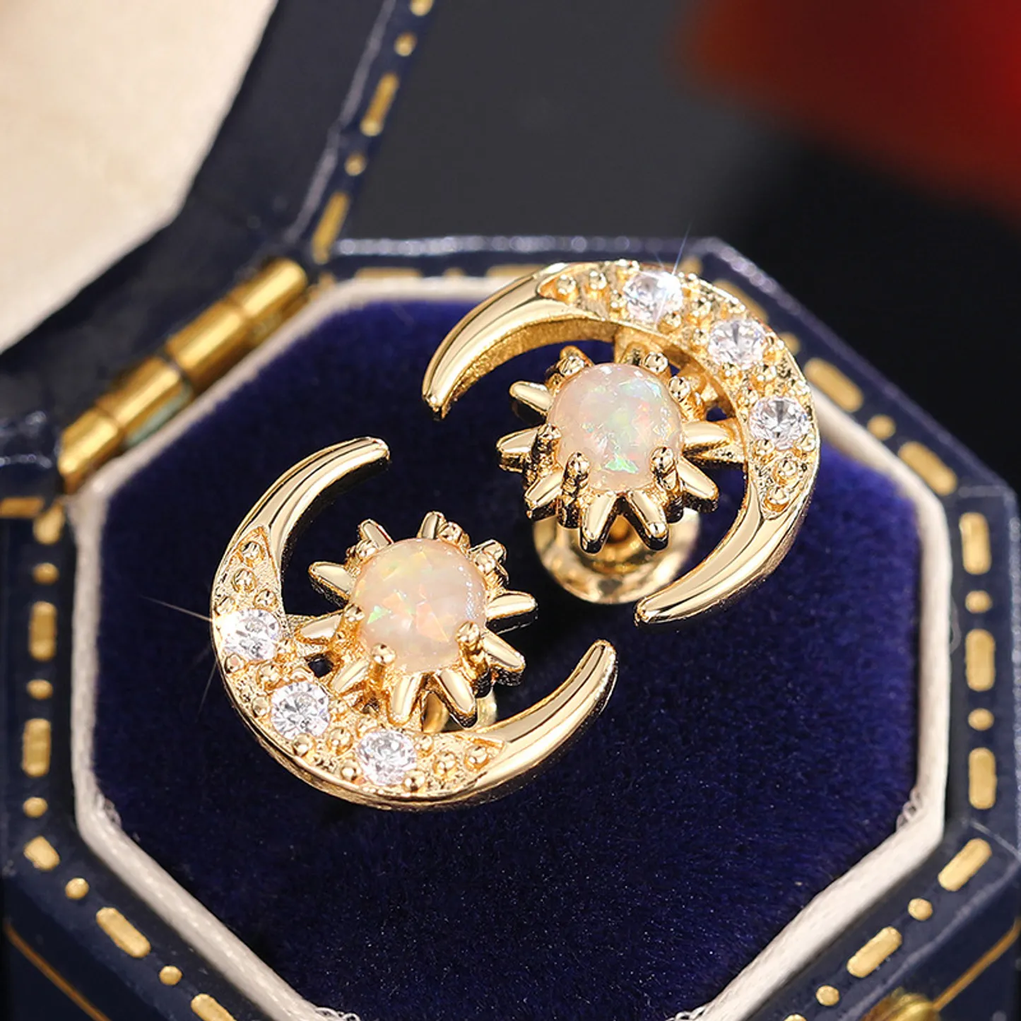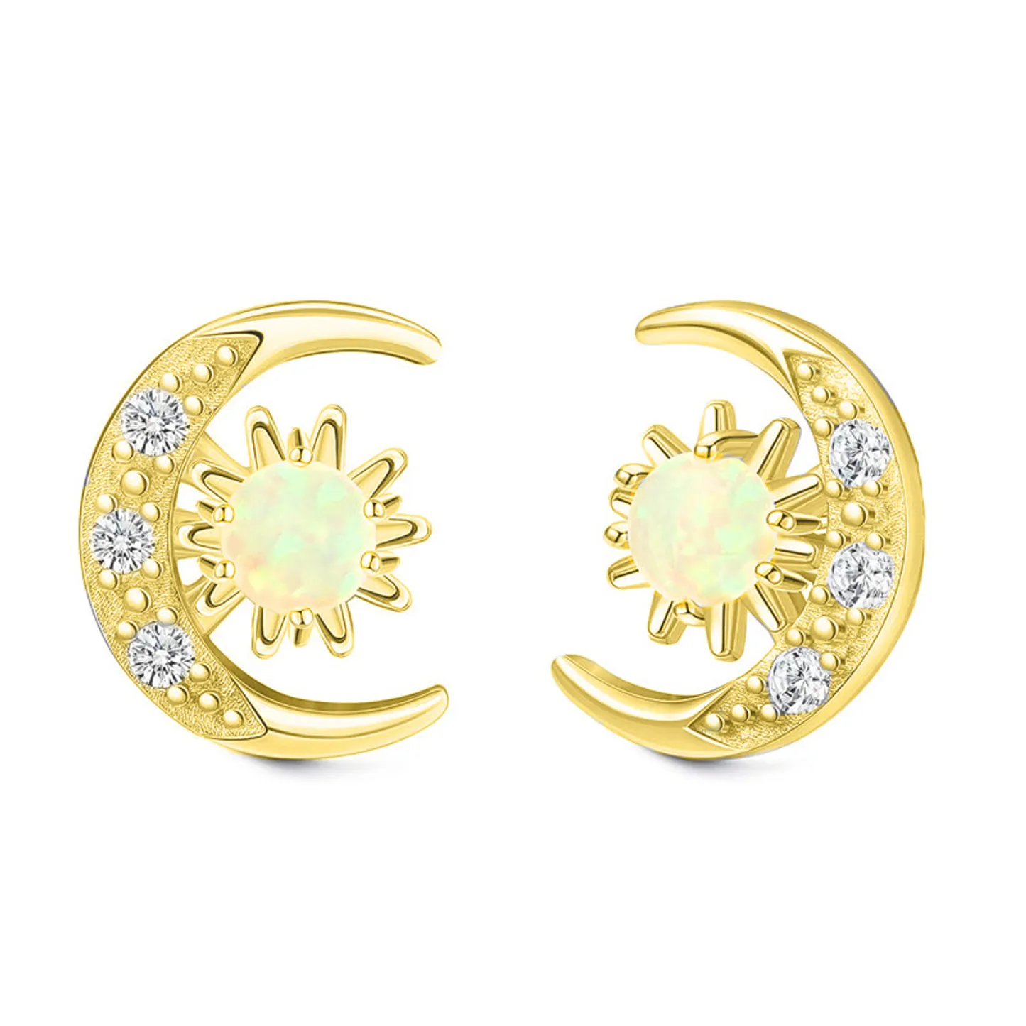 Color Golden diamondshape Round Brilliant Cut shape\pattern moon earringstype Stud Earrings occasion Gift inlaytechnology Claw Setting materialtype Zinc Alloy gender Women's mainstone Opal jewelrytype Earrings jewelrymainmaterial Alloy plating Silver Plated style Romantic certificatetype None
