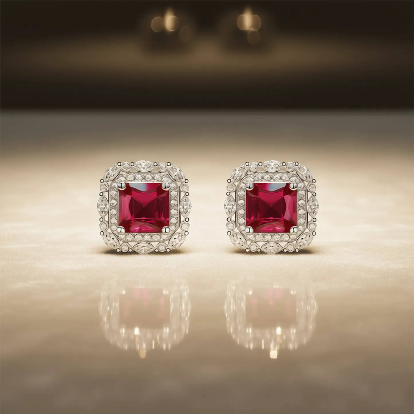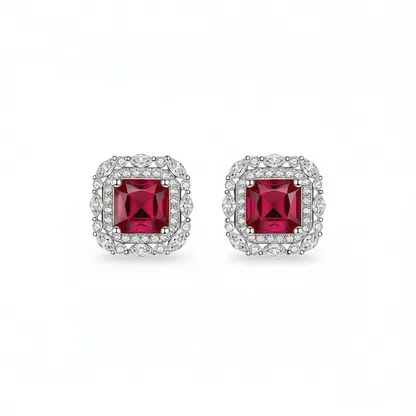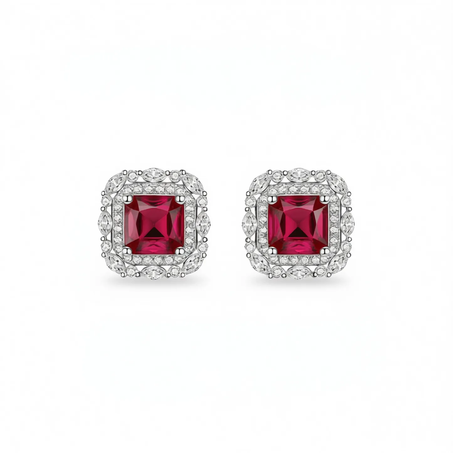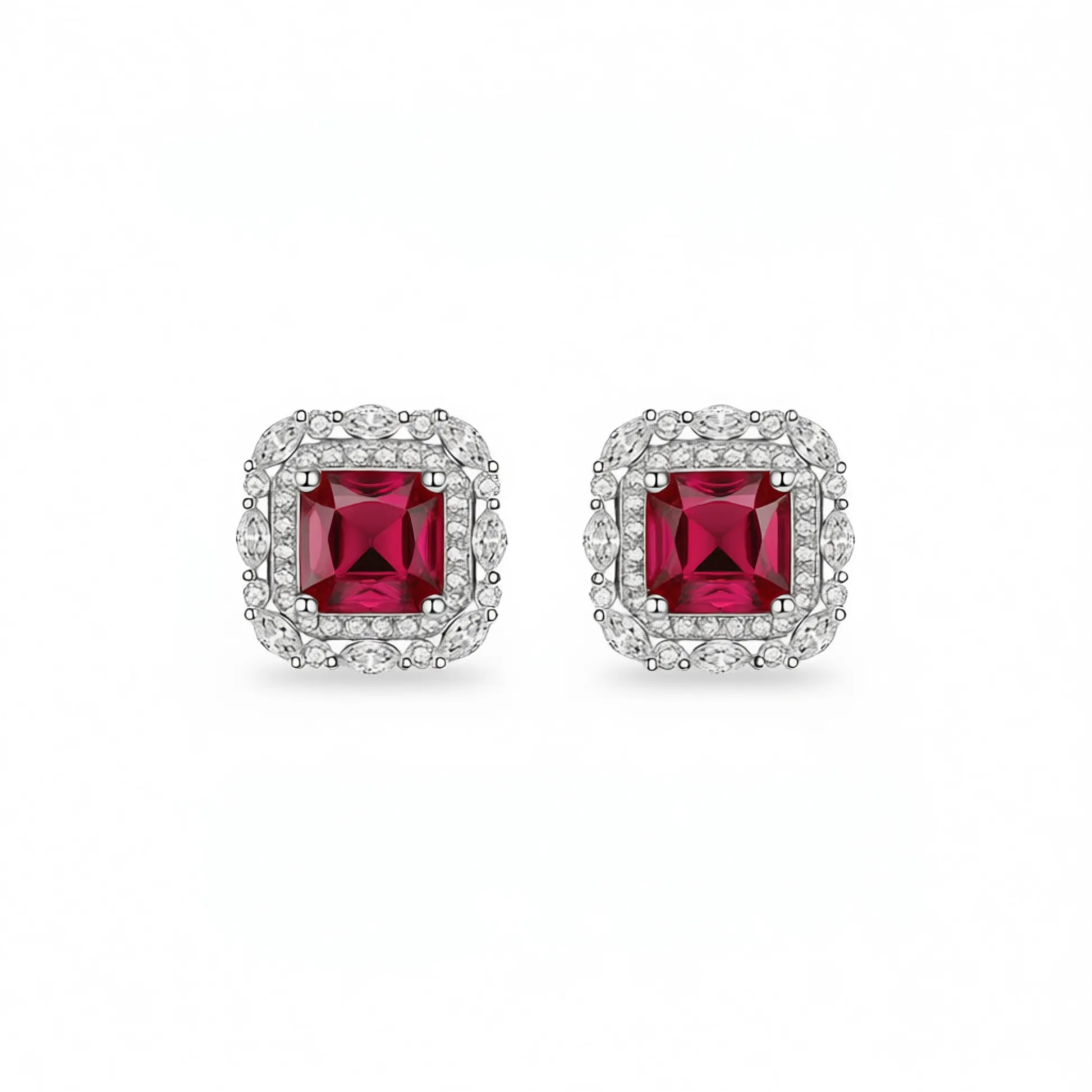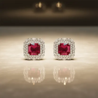 Classic Ruby Stud Earrings – Timeless Elegance for Every Occasion These exquisite stud earrings feature a stunning princess-cut ruby at the center, elegantly framed by a halo of sparkling clear stones in a geometric design. Crafted with precision, they showcase a claw setting that securely holds each gemstone, enhancing brilliance and durability. Made from high-quality zinc alloy, these earrings offer a luxurious look with long-lasting wear. The classic design makes them ideal for formal events, parties, or as a sophisticated addition to any jewelry collection. The yellow-tone finish adds warmth and contrast to the vibrant red ruby, creating a balanced and refined aesthetic. Designed specifically for women, these fashion-forward earrings combine modern style with timeless appeal. Their lightweight construction ensures comfort during extended wear, while the durable materials ensure lasting beauty. Perfect for gifting or personal adornment, these ruby stud earrings are a versatile choice for elevating any outfit with grace and charm.