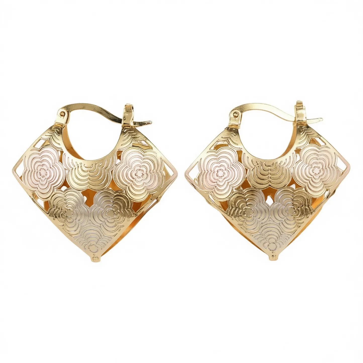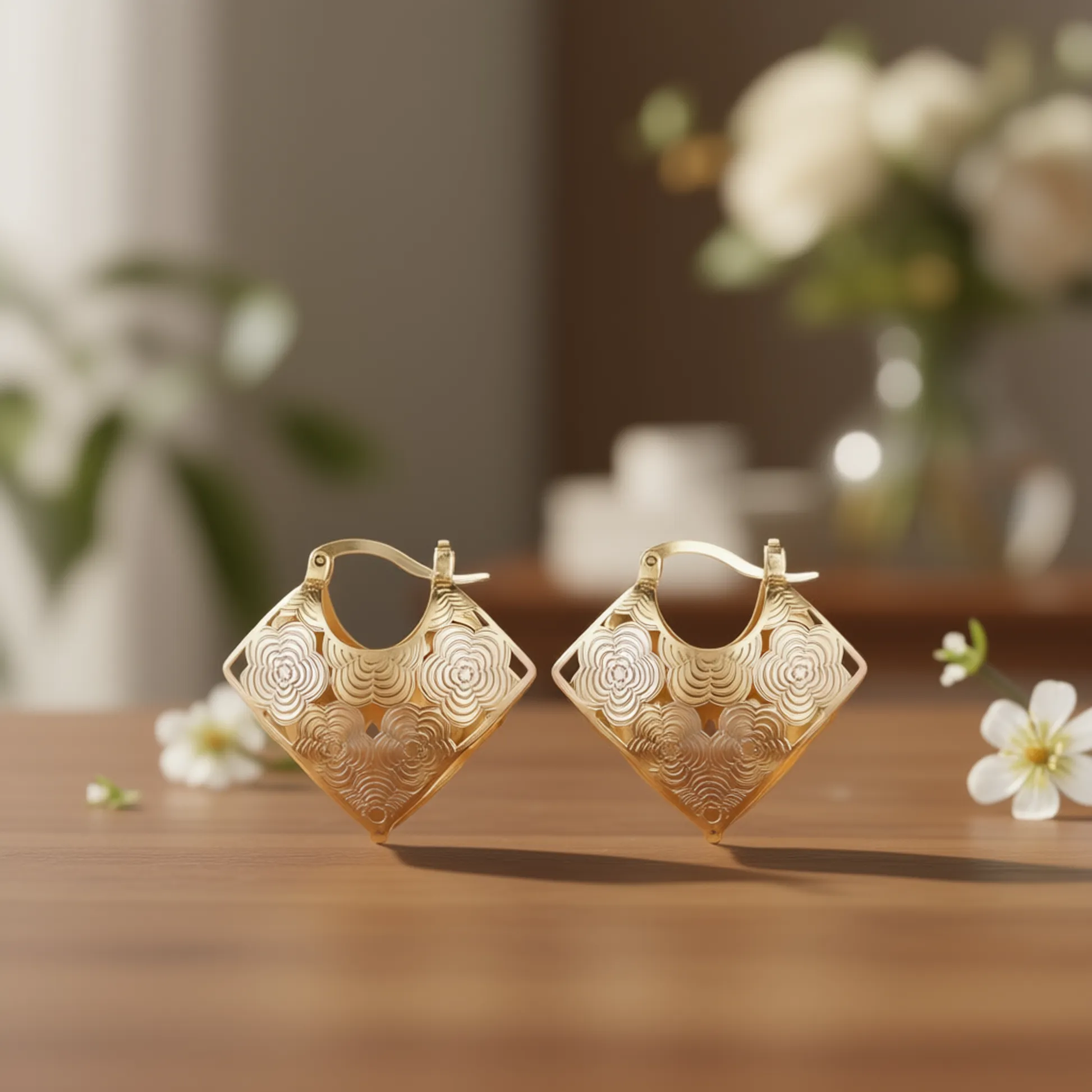 Gold Plated Floral Hoop Earrings for Women – Elegant Party Fashion Dangle Jewelry
