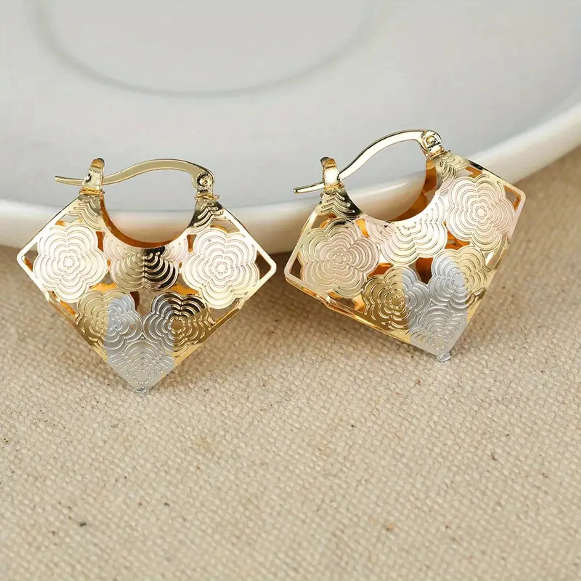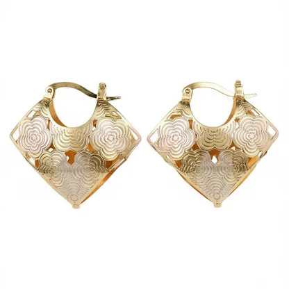 Product Introduction: These exquisite gold-plated floral hoop earrings are crafted to elevate any ensemble with a touch of timeless elegance. Designed specifically for women, these alloy metal earrings feature an intricate floral pattern that combines delicate artistry with modern fashion sensibilities. Perfect for parties, evening events, or special occasions, they offer a sophisticated look without compromising on comfort. Core Features: Why Choose These Earrings: Designed for style-conscious women who appreciate craftsmanship and detail, these earrings offer a perfect blend of fashion and functionality. Their lightweight build ensures all-day comfort, while the elegant floral pattern adds a unique flair to any outfit. Whether worn as a standalone piece or paired with other accessories, they make a refined addition to your jewelry collection.