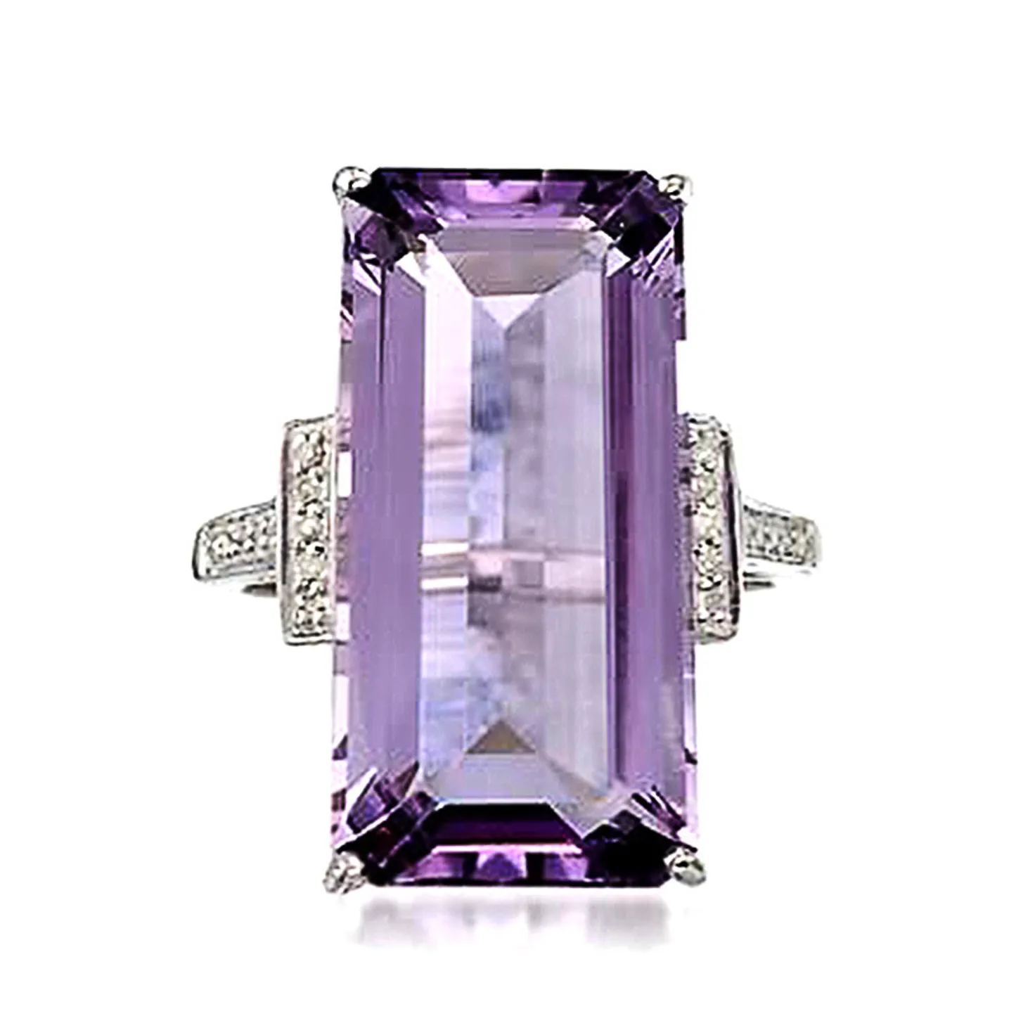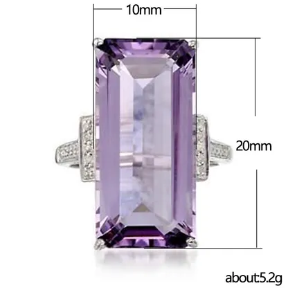 Product Introduction: This exquisite F941 ring features a stunning emerald-cut amethyst as its centerpiece, showcasing a rich lavender hue with exceptional clarity and brilliance. Crafted with precision, the gemstone is securely held in a sleek, polished setting that enhances its natural beauty. The band is adorned with delicate diamond accents on either side, adding subtle sparkle and elegance to the overall design. Core Features: Why Choose This Ring: The F941 ring offers a perfect balance of sophistication and style. Ideal for those who appreciate unique gemstones and timeless jewelry design, it makes a thoughtful gift or a personal statement piece. Its elegant silhouette and high-quality finish make it suitable for a variety of settings, from professional environments to special events.F941 - Elegant Emerald-Cut Amethyst Ring with Diamond Accents