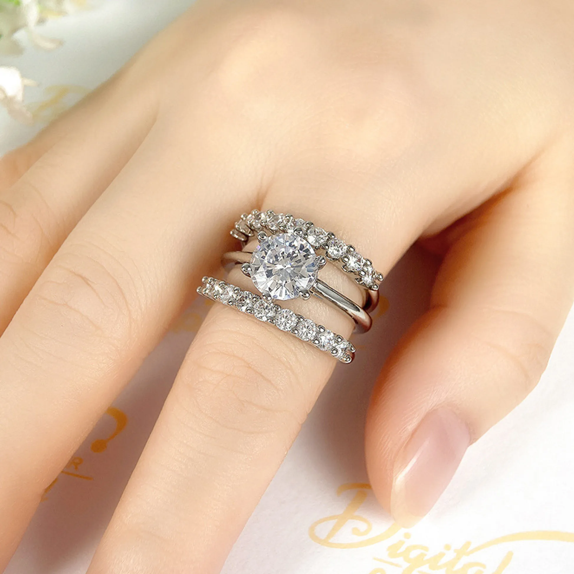 Product Introduction: This elegant diamond ring set features a stunning round-cut center stone, beautifully complemented by a halo of sparkling diamonds and a matching pavé band. Crafted with precision, the design combines timeless elegance with modern sophistication, making it ideal for engagement or anniversary celebrations. Core Features: Reasons to Purchase:
