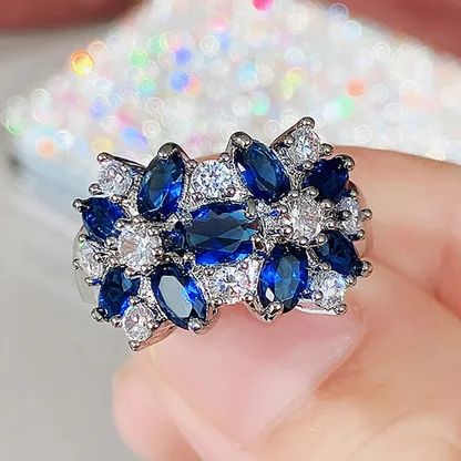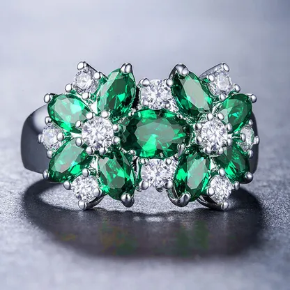 Product Introduction: This exquisite ring, model A036, features a stunning floral design crafted with elegance and sophistication. Designed specifically for women, it showcases a cluster arrangement of oval-shaped cubic zirconia stones in a striking black and clear combination, set in an alloy base. The flower-inspired pattern is meticulously detailed, making it a perfect accessory for special occasions such as parties or evening events. Core Features: Reasons to Purchase:
