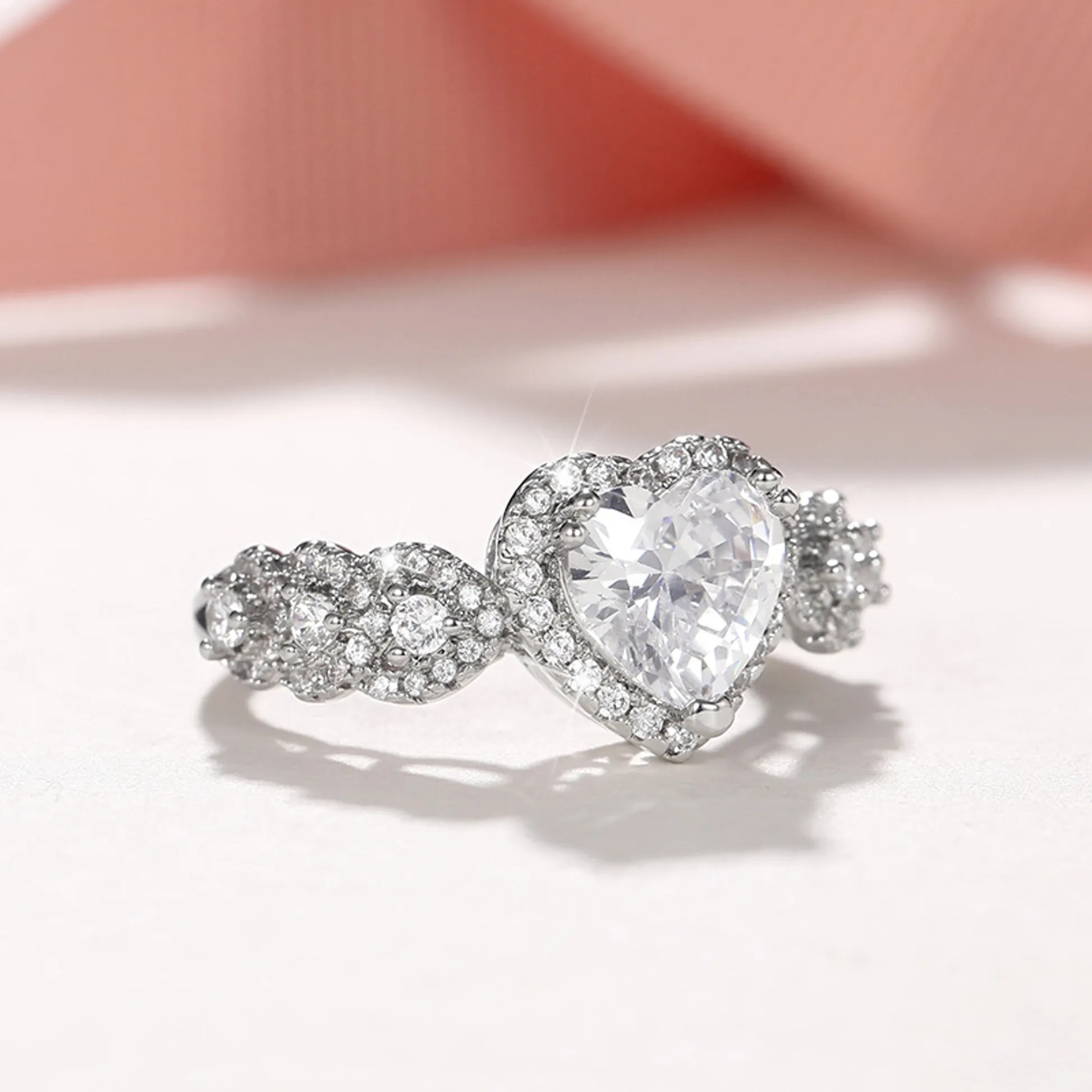 Product Introduction: This exquisite heart-shaped diamond ring, model F1730, is a perfect blend of elegance and timeless design. Crafted with precision, it features a central heart-cut gemstone surrounded by a halo of smaller sparkling stones, creating a radiant and luxurious appearance. The band is adorned with intricate floral-inspired side clusters, enhancing its romantic charm. Ideal for engagement or anniversary gifts, this ring symbolizes love and commitment. Core Features: Reasons to Purchase: