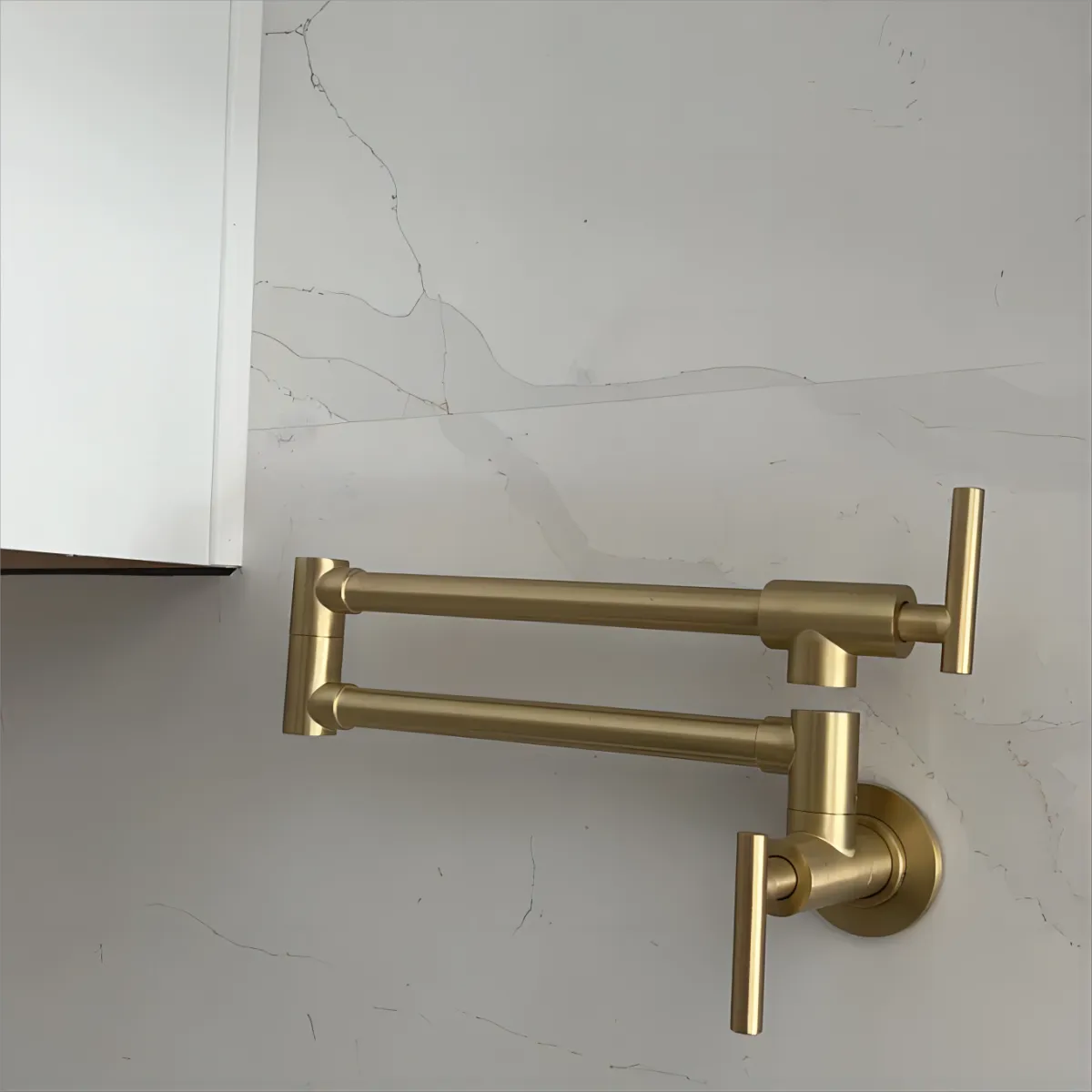 5.Brushed gold pot filler with dual handles for easy operation.