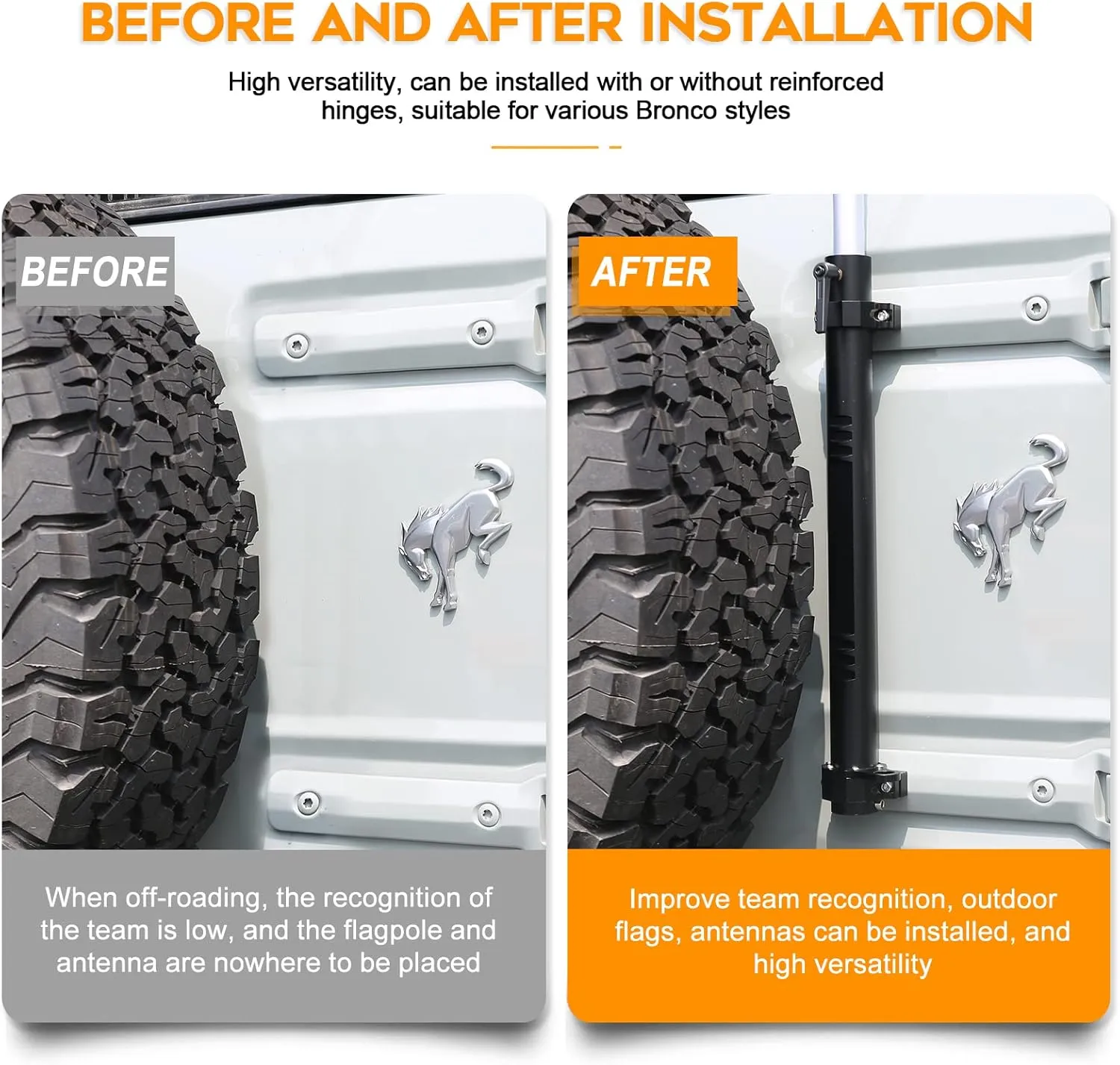 1. 2-in-1 bracket: can be used as an antenna bracket or flagpole bracket. Multi-functional bracket makes the Ford Mustang look cleaner and simpler