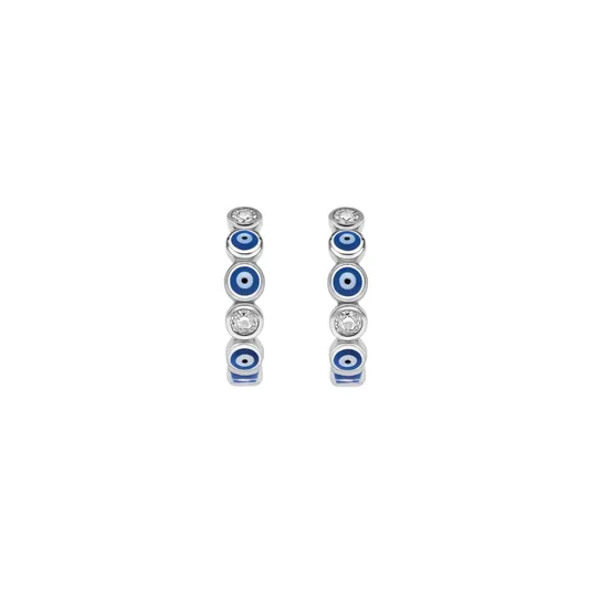 E3808 White Gold Huggie Earrings With Blue Evil Eye And Crystal Bezel Setting For Women Classic Fashion Jewelry