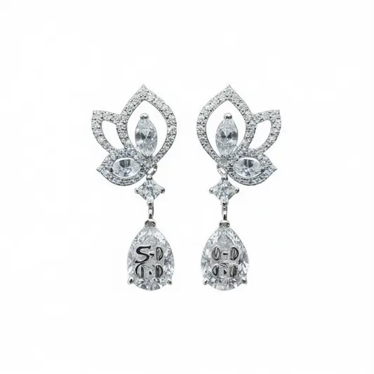 E3551 White Gold Diamond Earrings Pear Cut D Color Natural Luxury Wedding Women's Jewelry