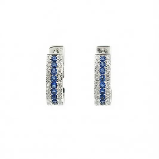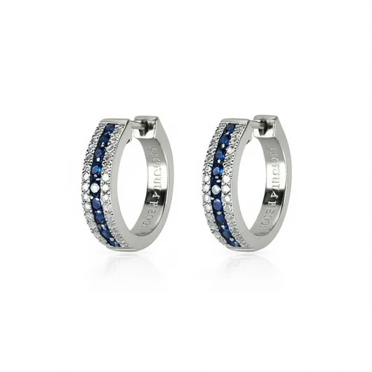 Silver Plated Huggie Earrings With Sapphire And Diamond Channel Setting For Women Party Classic Fashion Jewelry