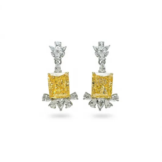 Flower Shape Yellow Diamond Drop Earrings For Women Classic Party Jewelry Alloy Claw Setting Cushion Cut Earrings