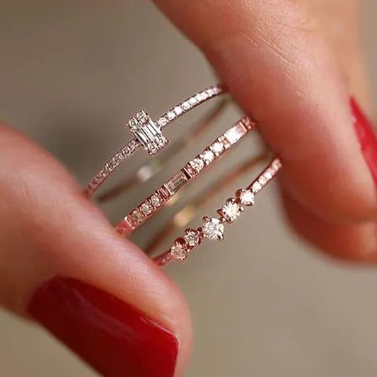 F1328 Rose Gold Diamond Rings Baguette Cut Natural G Color Women's Engagement Jewelry