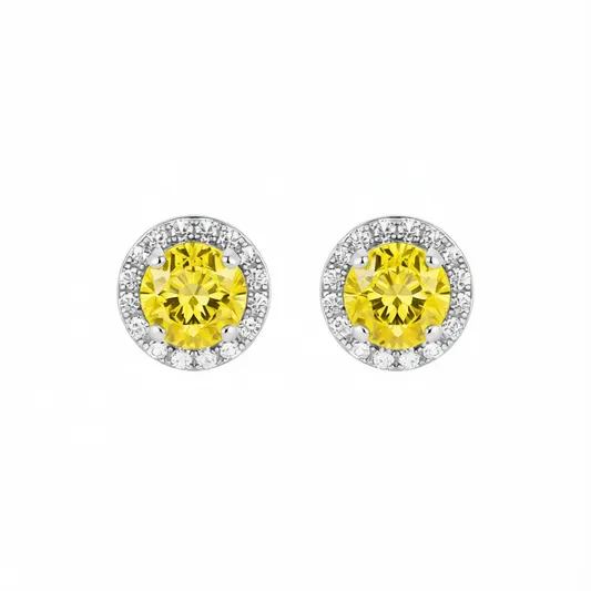 White Gold Yellow Diamond Stud Earrings Round Brilliant Cut Claw Setting Women's Classic Fashion Jewelry Gift